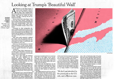 Next is an Op-Ed by novelist Luis Alberto Urrea, for the New York Times Sunday Review several weeks back, on Trump's glorious border wall. Urrea makes clear that this project is little more than one giant grift that will suck millions of dollars of taxpayer money and provide little in return (due to the fact that the number of immigrants caught crossing the border illegally is already the lowest it's been in decades). Read that one here.